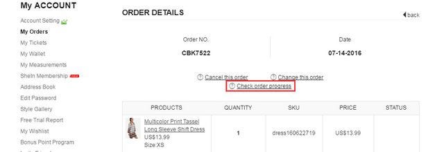 You can find out the history of your order and its status. Log in to My Account and click on My Orders. Online Shein Order tracking system is the fastest and easiest way to get up to date information on your parcels status and expected delivery date.