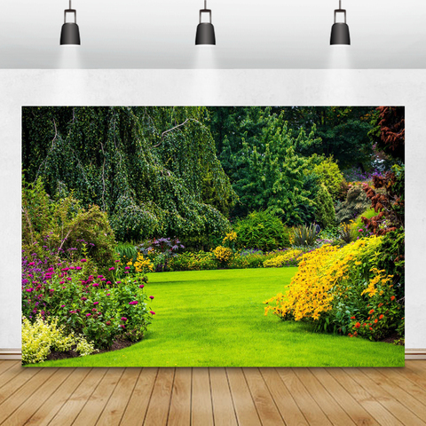 Buy Online Laeacco Spring Photophone Nature Landscape Garden Forest Green Trees Flowers Grass Photography Backdrops Photo Backgrounds Props Alitools