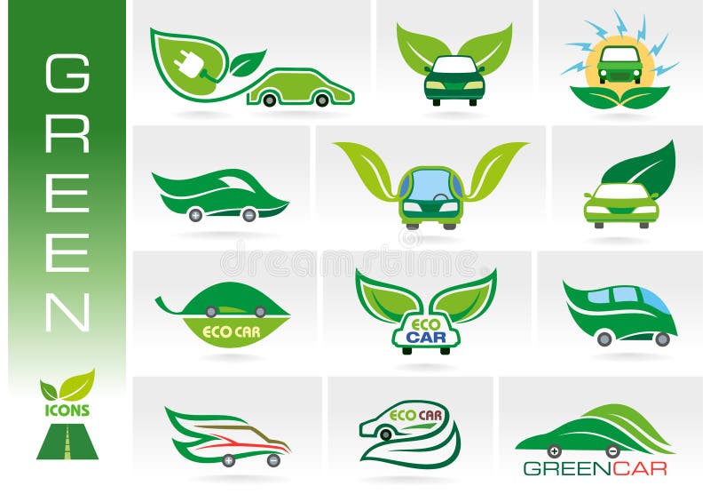 Green Eco Friendly Transportation Icons Leaf Cars Stock Vector Illustration Of Designs Emission 137732769