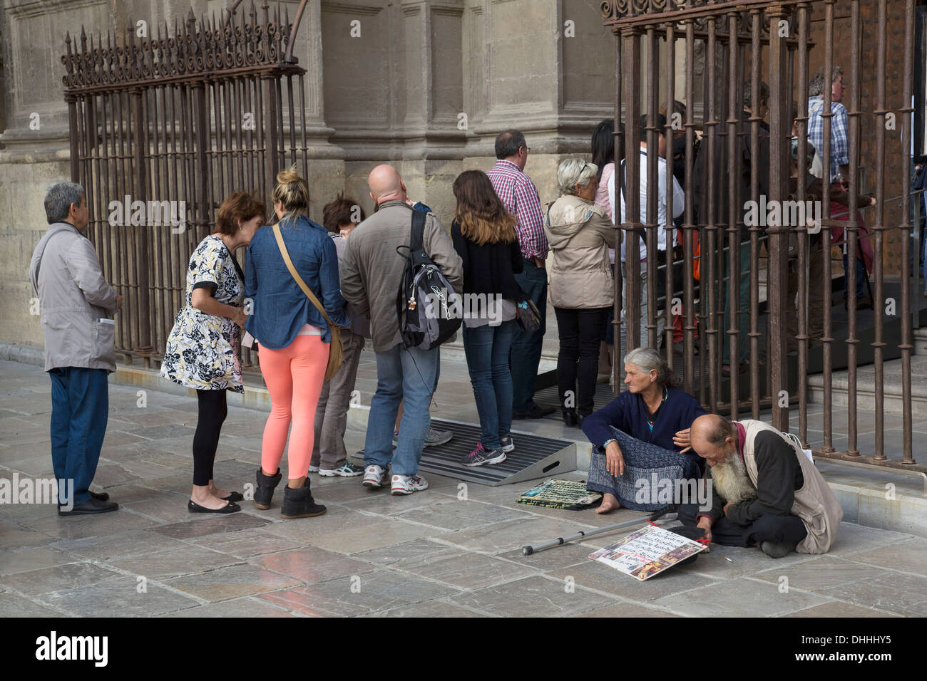 Homeless Couple Begging Outside Granada Cathedral Or The Cathedral Stock Photo Alamy